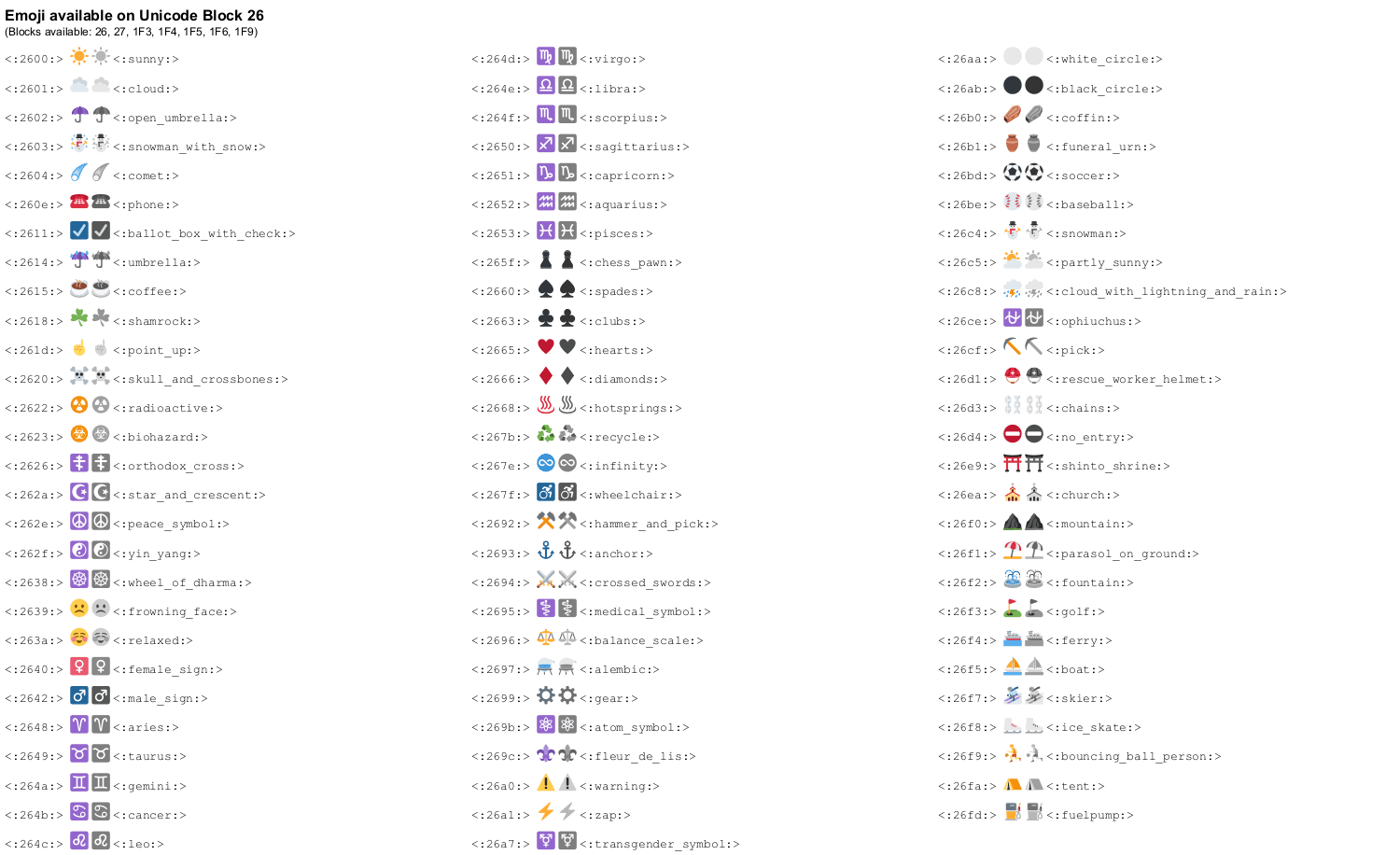 Unicode Special characters that depend on installed fonts, the emoji are always available. Furthermore, emoji are already colored, but you can recolor them if you like (see examples above).