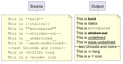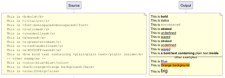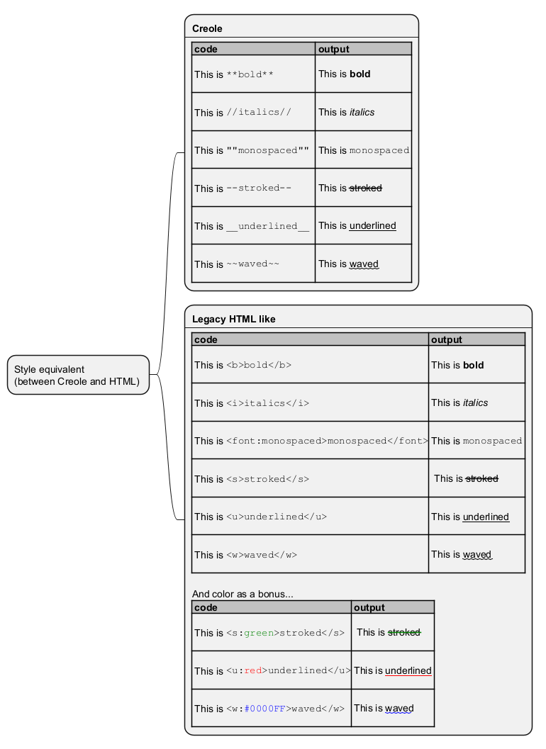 Чтобы иметь стандартизированный способ стилизации текста, в PlantUML интегрирован легковесный движок Creole и все диаграммы в PlantUML поддерживают этот синтаксис.