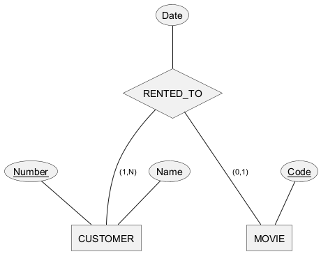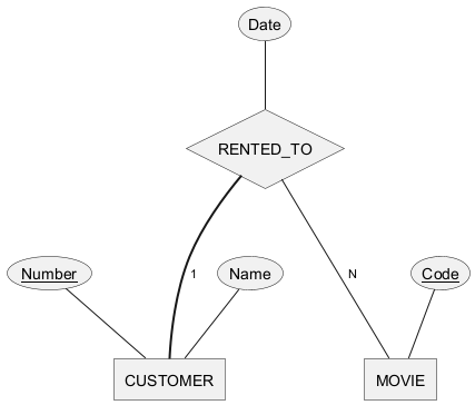 partial participation (optional). Total participation is indicated using a double or thicker line. Relationships can also have attributes.