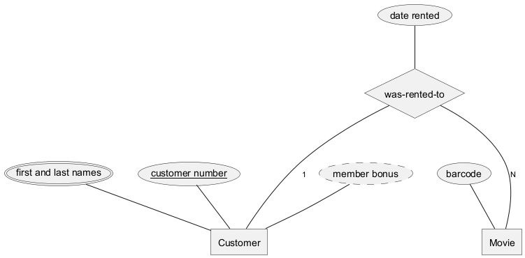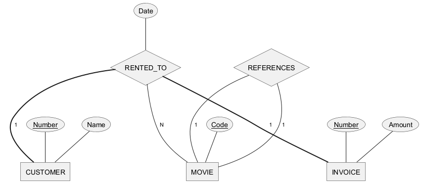 Entities, attributes and relationships can be given aliases to make the diagram more readable.