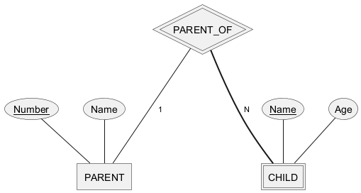 partial key on the weak entity itself and the key of another entity, which it is related to via an