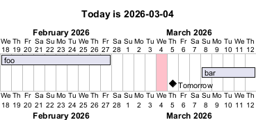 [bar] requires 5 days and starts %date("YYYY-MM-dd", $now + 4*24*3600)