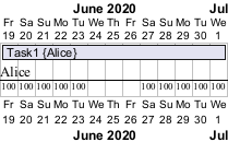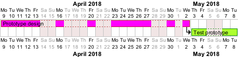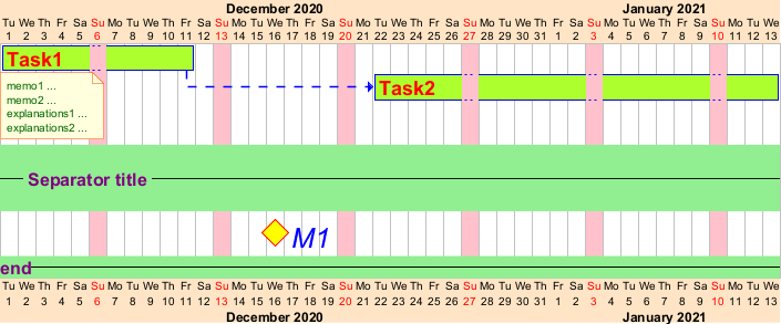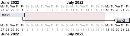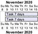 [SameTaskName] as [T1] lasts 7 days and is colored in pink