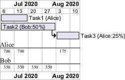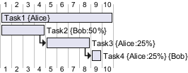 [SameTaskName] as [T2] lasts 3 days and is colored in orange