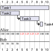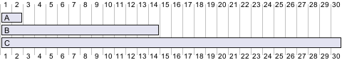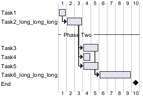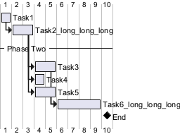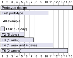 На диаграмме Ганта каждая задача представлена в виде столбика, длина и положение которого отражают
