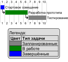 график проекта, позволяя руководителям и членам команды сразу увидеть даты начала и окончания всего проекта. Диаграмма отображает задачи или виды деятельности вдоль горизонтальной оси времени, показывая
