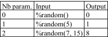 | 1 | %random(n) | returns an interger between 0 and n - 1 |