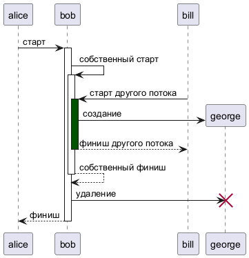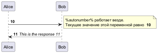 В диаграммах последовательности на языке PlantUML команда