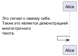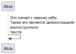 Alice -> Alice: Это сигнал к самому себе.\nТакже это является демонстрацией\nмногострочного \nтекста.