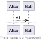 The sequence -> is used to draw a message between two participants. Participants do not have to be explicitly declared. To have a dotted arrow, you use --> It is also possible to use <- and <--. That does not change the drawing, but may improve readability. Note that this is only true for sequence diagrams, rules are different for the other diagrams. 🎉 Copied!