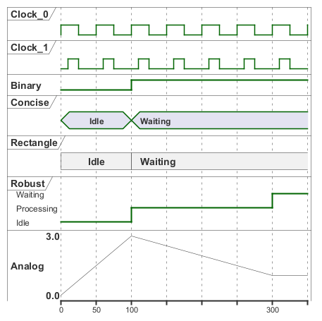 A robust complex line signal designed to show the transition from one state to another (can have many states)