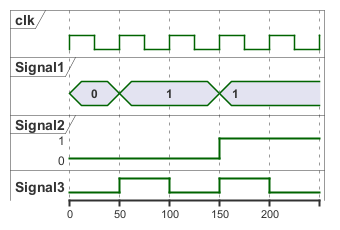 It's also possible to have binary and clock signal, using the following keywords: