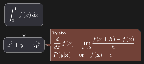 :<latex>x^2+y_1+z_{12}^{34}</latex>;