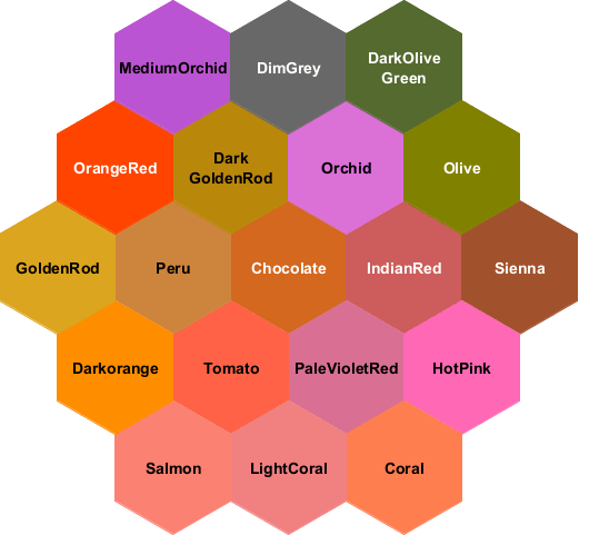 也可以打印接近其他颜色的调色板(使用其名称或HEX值)。