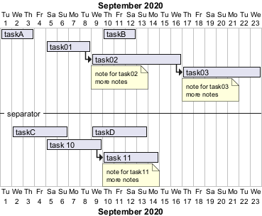 版本控制系统跟踪更改。这种方法对于已经习惯了基于文本的编码环境的团队尤其有利。PlantUML 的甘特图语法