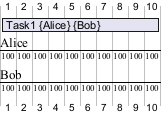 [SameTaskName] as [T1] lasts 7 days and is colored in pink