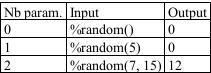 | 1 | %random(n) | returns an interger between 0 and n - 1 |