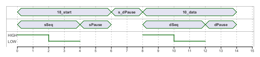 时钟信号 ,即从高电平到低电平反复转换的信号,需要用period设置周期。可选的参数还有脉冲时长pulse和偏移量offset