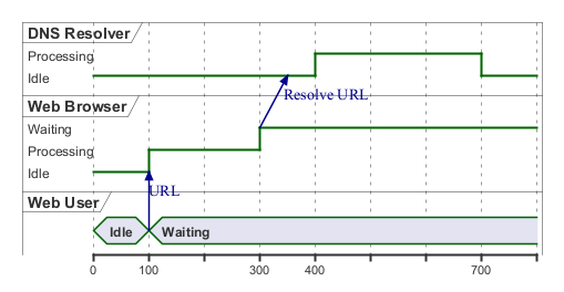 事件的时间顺序,展示不同对象如何随着时间的推移相互影响。