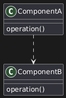 @startuml class ComponentA { operation() } class ComponentB { operation() } ComponentA ..> ComponentB @enduml