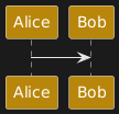 @startuml <style> element { backgroundColor: #OrangeRed; } @media (prefers-color-scheme:dark) { element { backgroundColor: #DarkGoldenRod; } } </style> Alice -> Bob @enduml