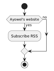 @startuml start if (Ayowel's website) then (yes) :Subscribe RSS; else (no) endif stop @enduml
