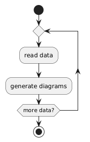 @startuml start repeat :read data; :generate diagrams; repeat while (more data?) stop @enduml