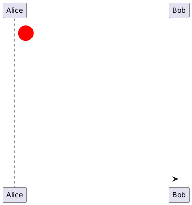 @startuml sprite foo1 <svg width="100" height="100"> <circle cx="5" cy="5" r="5" stroke-width="0" fill="red" /> </svg> Alice->Bob : <$foo1*3> @enduml
