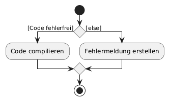 @startuml start if() then ([Code fehlerfrei]) :Code compilieren; else ([else]) :Fehlermeldung erstellen; endif stop @enduml