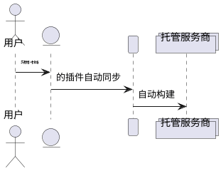 @startuml actor 用户 as user entity obisdian as agent participant github as git collections 托管服务商_vercel as vercel user -> agent: 编辑 agent -> git: obisdian的git插件自动同步 git -> vercel: git action自动构建 @enduml