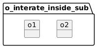 @startuml !$data=[ {"a": 1} , {"a": 2} ] !startsub test !procedure $test_inner($data) !foreach $d in $data object o_interate_inside_sub.o##$d.a !endfor !endprocedure $test_inner($data) !endsub @enduml
