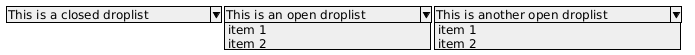 @startsalt { ^This is a closed droplist^ | ^This is an open droplist^^ item 1^^ item 2^ | ^This is another open droplist^ item 1^ item 2^ } @endsalt