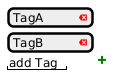 @startsalt { [TagA \t <color:red><&delete></color>] [TagB \t <color:red><&delete></color>] "add Tag" | <color:green><&plus></color> } @endsalt