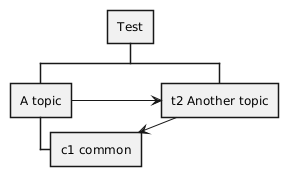 @startwbs * Test ** "A topic" as b *** "c1 common" as c1 ** "t2 Another topic" as t2 t2 --> c1 b --> t2 @endwbs