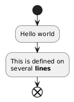@startuml start :Hello world; :This is defined on several **lines**; end @enduml