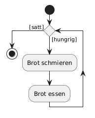 @startuml start while() is ([hungrig]) :Brot schmieren; :Brot essen; endwhile ([satt]) stop @enduml