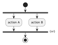 @startuml start fork :action A; fork again :action B; end fork {or} stop @enduml