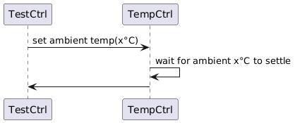 @startuml TestCtrl -> TempCtrl: set ambient temp(x°C) TempCtrl -> TempCtrl: wait for ambient x°C to settle TempCtrl -> TestCtrl: @enduml