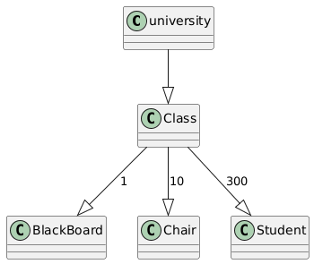 @startuml university --|>Class Class --|> BlackBoard:1 Class --|>Chair:10 Class --|>Student:300 @enduml