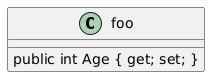 @startuml class foo { {method} public int Age { get; set; } } @enduml