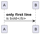 @startuml A -> B : <b>only first line%newline()is bold</b> @enduml