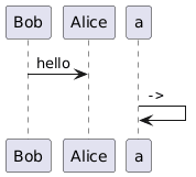 @startuml Bob -> Alice : hello a -> a : ""-> "" @enduml