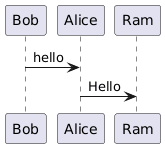 @startuml Bob -> Alice : hello Alice -> Ram : Hello @enduml