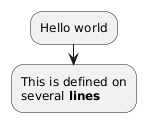 @startuml :Hello world; :This is defined on several **lines**; @enduml