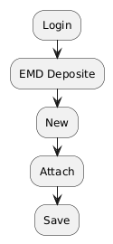 @startuml :Login; :EMD Deposite; :New; :Attach; :Save; @enduml