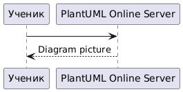 @startuml Ученик -> "PlantUML Online Server" return Diagram picture @enduml