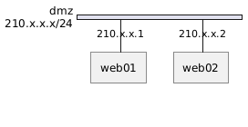 @startuml nwdiag { network dmz { address = "210.x.x.x/24" web01 [address = "210.x.x.1"]; web02 [address = "210.x.x.2"]; } } @enduml