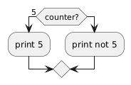 @startuml if (counter?) equals (5) then :print 5; else :print not 5; @enduml