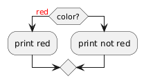 @startuml if (color?) is (<color:red>red) then :print red; else :print not red; @enduml