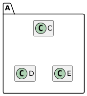 @startuml hide empty members namespace A { class C together { class D class E } } @enduml